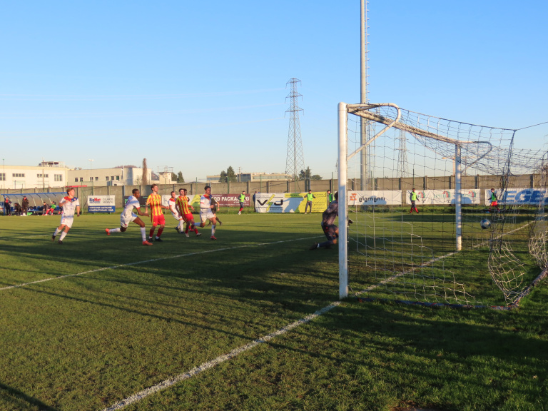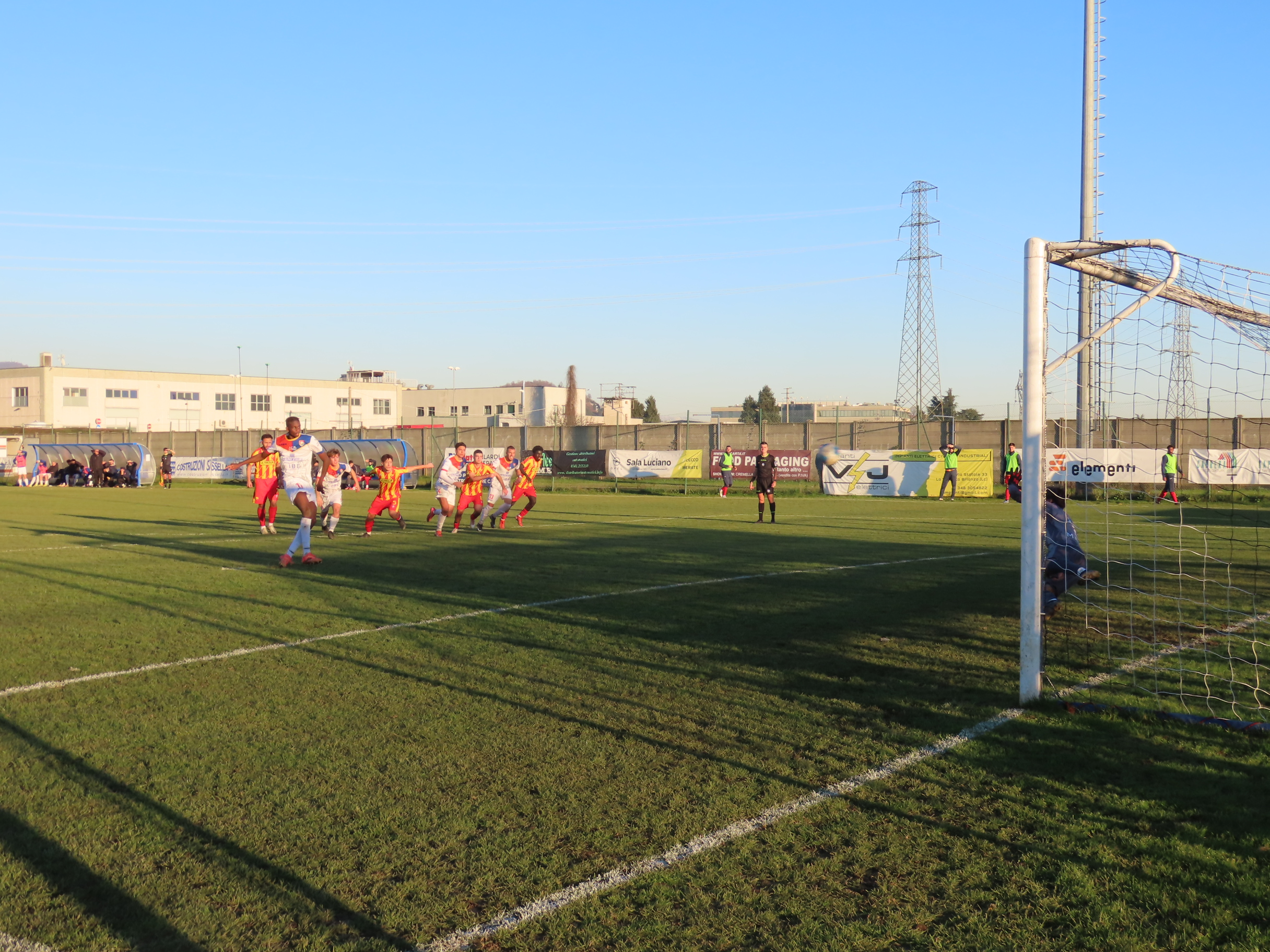 Gli undici di Del Piano, ben messi in campo, attuano molto bene la trappola del fuorigioco, per poi aggredire tutte le seconde palle con un’ottima disposizione. Poche le emozioni durante la gara. Da segnalare il gol ospite arrivato proprio allo scadere del primo tempo, dopo un’ottima interdizione: l’azione, partita dai piedi di Belloli, è stata deviata in modo imparabile da Milani.